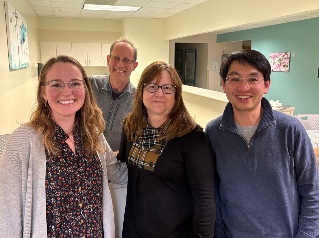 Two professors from Caitlin’s undergraduate alma mater Stonehill made a visit to Dartmouth for a visit with a collaborator. It was a great opportunity to catch up and a fun photo opportunity to have undergrad mentors (Magda and Irvin, front) with graduate mentors (David, back).