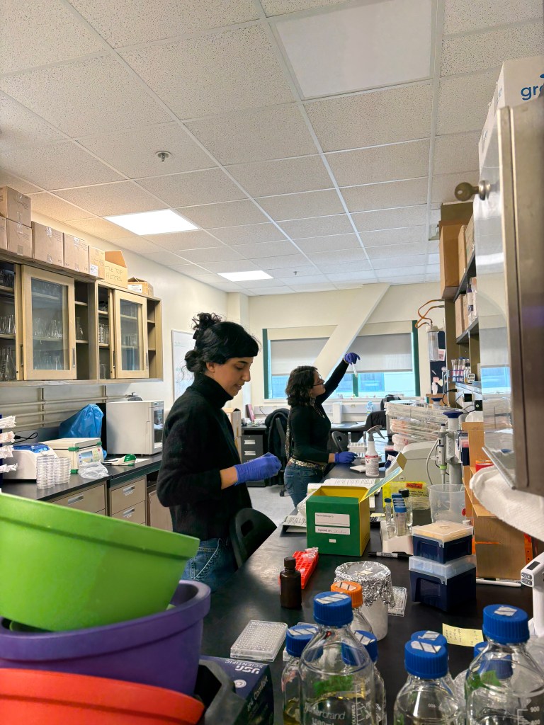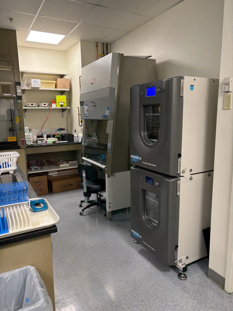 It has been a busy fall getting the lab set up with everything we need. We are still waiting on a lot of equipment, but today (10/27/25) Sylvia and I did the first experiments in the lab (bottom right). We are looking forward to welcoming rotation students this winter and having the space liven up!