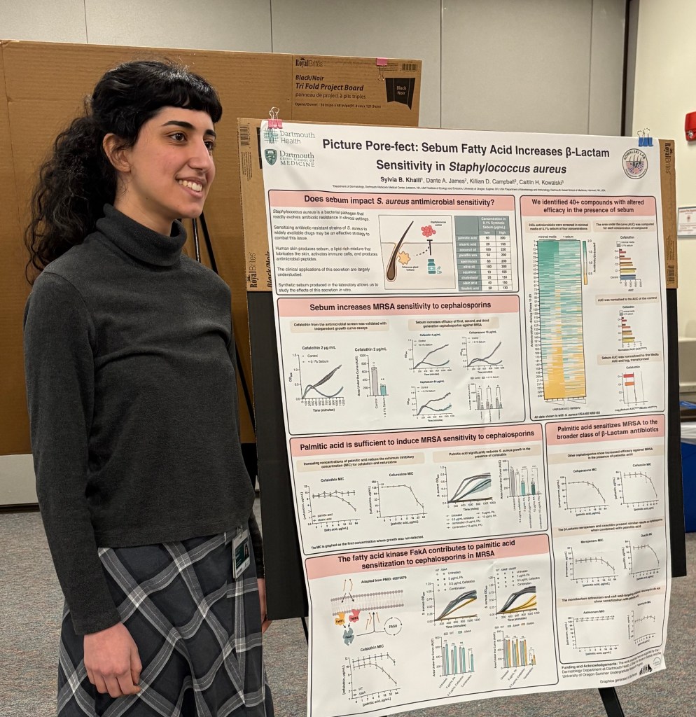 Sylvia and Caitlin attended Dermatology Research Night and got to see great talks by faculty and residents from both inside and outside the department. Sylvia has her poster on display representing the ongoing work in the Kowalski Lab to understand how skin lipids impact S. aureus antibiotic sensitivity. Go Sylvia!